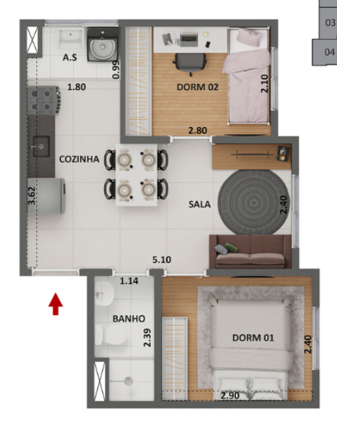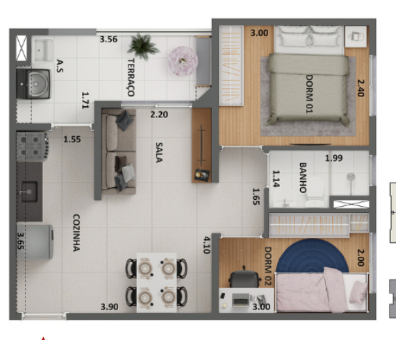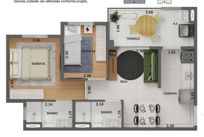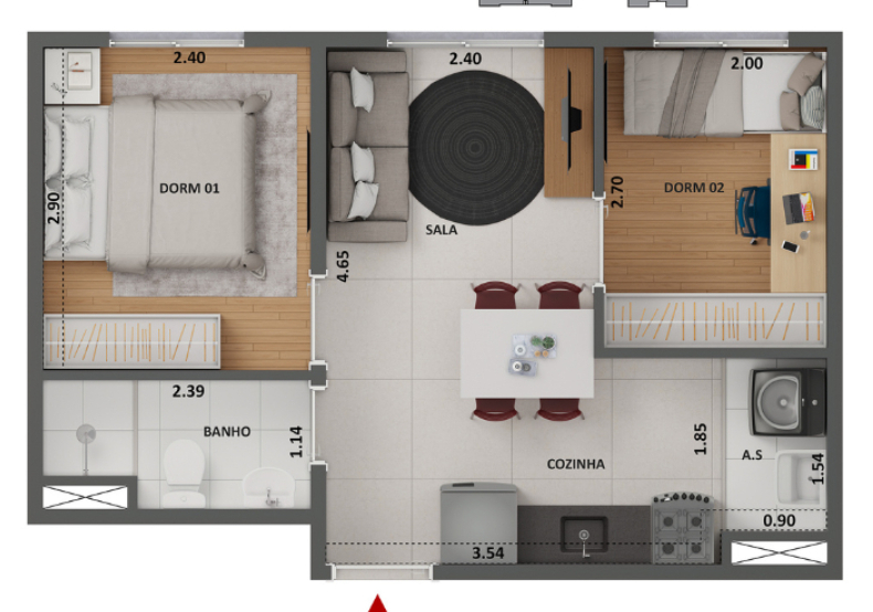 Apartamentos de 2 Dormitórios, com opção com varanda integrada com a sala e cozinha, e suíte. More em um condomínio com diversos itens de lazer e comodidade, todos já entregues equipados e bem decorados pela Construtora.
