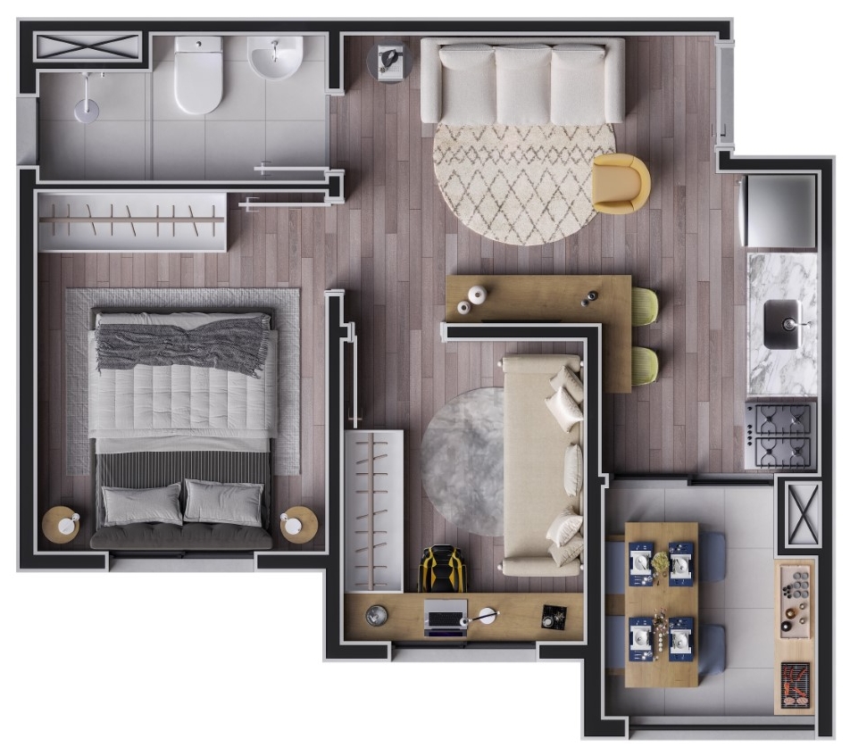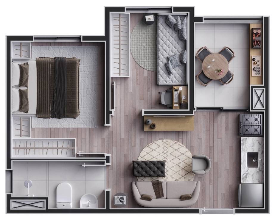 Um empreendimento completo para quem deseja ter opções de mobilidade e boas opções de lazer. Apartamentos Studios ou 2 Dormitórios, com opção de cozinha com varanda e até varanda privativa. Se você está procurando uma oportunidade para sair do aluguel e ter um condomínio completo, conheça esse empreendimento.