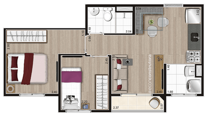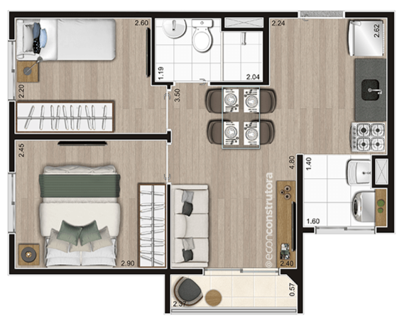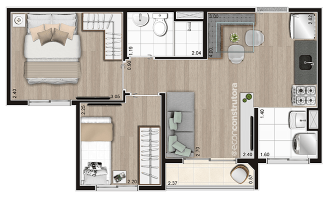 Apartamentos de 37m² e 38m², com 2 Dorms. Opções com ou sem vaga no Jaraguá.